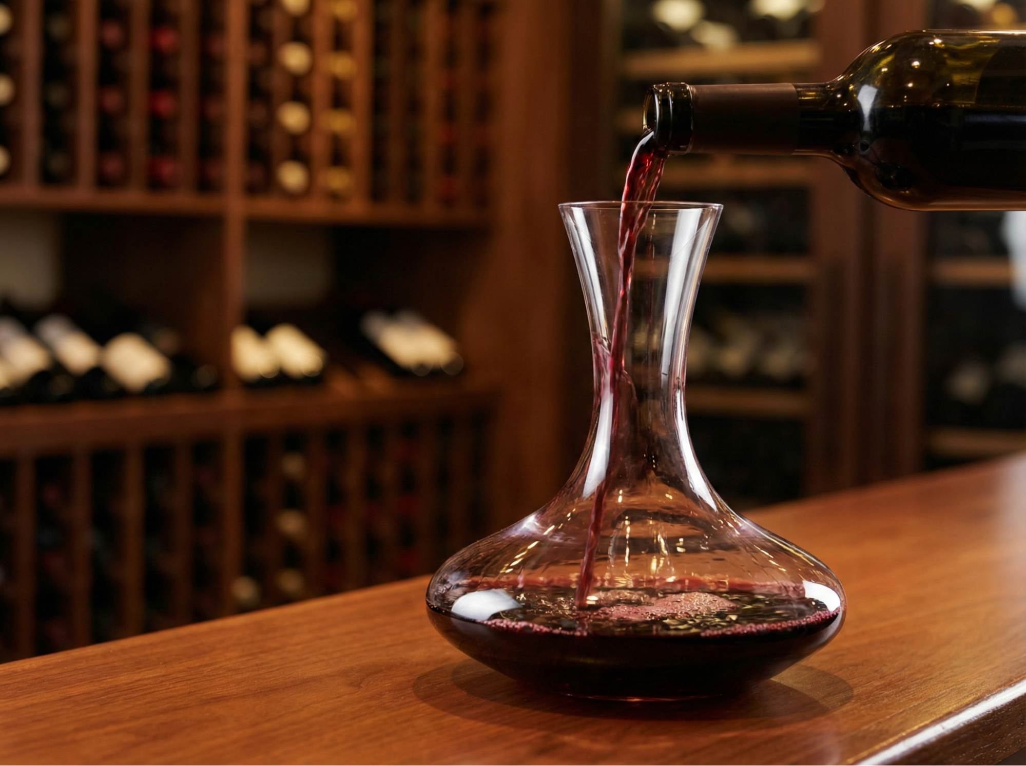 Выдержанные красные сухие вина желательно декантировать — перелить в графин за 30–60 минут до подачи. Контакт с кислородом раскрывает букет и смягчает танины. Молодые вина достаточно открыть за 15–20 минут до употребления.